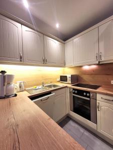 Apartmán ubytování zahrnuje 2 ložnice, plně vybavenou kuchyň s lednicí a myčkou a 1 koupelnu se sprchou. V apartmánu ubytování je k dispozici posezení, pračka a koupelna s fénem.