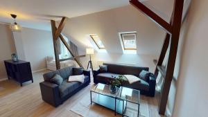 Cet appartement comporte 1 chambre, une cuisine avec un réfrigérateur et un lave-vaisselle, ainsi que 1 salle de bains avec une baignoire et un sèche-cheveux. Wohnen im Jugendstilviertel Kaßberg, WLAN fournit des serviettes et du linge de lit.