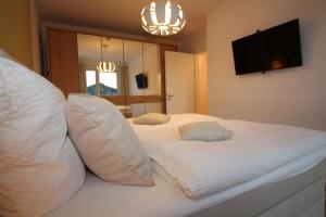 Apartmán Wohnen am Yachthafen W45 nabízí 2 ložnice, 1 koupelnu, plně vybavenou kuchyň s jídelním koutem a lednicí a obývací část s TV s plochou obrazovkou. V koupelně ubytování ubytování nechybí sprcha ani fén.