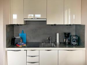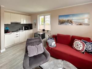 Wohnpark Stadt Hamburg in Binz - Wohnung 49 include 1 camera da letto, soggiorno, bagno con doccia e phon, e angolo cottura con frigo e macchina da caffè. Per una maggiore comodità, la struttura può fornire asciugamani e lenzuola a un costo aggiuntivo.
