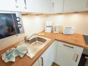 Apartmán Wohnpark Stadt Hamburg - Apt. 05 nabízí 1 ložnici, 1 koupelnu, plně vybavenou kuchyň s jídelním koutem a lednicí a obývací část s TV s plochou obrazovkou. V koupelně ubytování Wohnpark Stadt Hamburg - Apt. 05 nechybí sprcha ani fén.