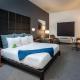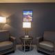 A seating area with satellite TV is featured in this room. A microwave, small fridge, and a coffee machine are also provided.