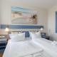 Apartmán v Yachthafenresidenz-Wohnung-8204-852 zahrnuje 1 ložnici, obývací pokoj, 1 koupelnu a plně vybavený kuchyňský kout s lednicí a myčkou. Koupelna je vybavená sprchou.