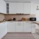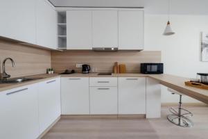 Apartmán Yes apart hotel 1 má 1 ložnici, TV s plochou obrazovkou a kuchyňský kout.