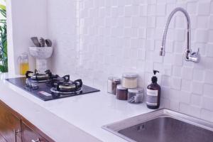 Questa villa con aria condizionata comprende 2 camere da letto, un soggiorno, una cucina con utensili, frigorifero e piano cottura, e 2 bagni. La dotazione di Yoga Villa Canggu comprende lenzuola e asciugamani.