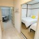 Diese Ferienwohnung mit Klimaanlage und 2 Schlafzimmern verfügt über 1 Badezimmer, ausgestattet mit einem Bidet, einem Whirlpool und kostenlosen Pflegeprodukten. Es gibt einen Essbereich und eine Küche komplett ausgestattet mit einem Kühlschrank und einer Mikrowelle.
