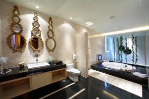 The spacious suite features 1 bedroom and 1 bathroom with a bath and free toiletries. This suite has air conditioning, flat-screen TV with cable channels, city views, as well as chocolate for guests. V této ubytovací jednotce je k dispozici 1 postel.