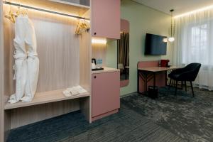 Providing free toiletries and bathrobes, this twin/double room includes a private bathroom with a shower, a hairdryer and slippers. The air-conditioned twin/double room provides a flat-screen TV with cable channels, soundproof walls, a tea and coffee maker, a wardrobe as well as city views.