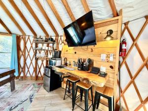 Guests will have a special experience as the studio features a hot tub. The studio's kitchen, which features a refrigerator and kitchenware, is available for cooking and storing food. The spacious studio provides air conditioning, a washing machine, a private entrance, a tea and coffee maker and a TV.