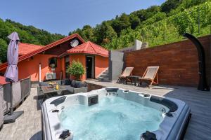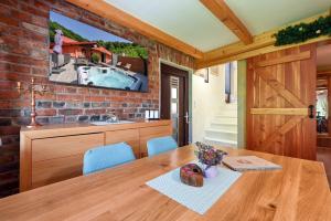 The hot tub and fireplace are the special features of this chalet. Featuring a private entrance, this air-conditioned chalet comprises 1 living room, 2 separate bedrooms and 2 bathrooms with a walk-in shower and a bath or a shower. Guests will find a stovetop, a refrigerator, a dishwasher and kitchenware in the kitchen. The chalet also provides guests with a barbecue. A seating area with a flat-screen TV, soundproof walls and a terrace are featured in this spacious chalet. The unit offers 4 beds.