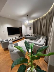 Diese Ferienwohnung mit 2 Schlafzimmern bietet den Gästen Flachbild-TV, eine Klimaanlage und ein Wohnzimmer.