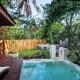 The expansive villa offers more than 150-sqm of living space and is composed of a living room, dining room, garden, private pool and an outdoor seating area.