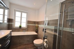 Apartmán Zentral, am Park mit Parkplatz nabízí 3 ložnice, 2 koupelny, ložní prádlo, ručníky, TV s plochou obrazovkou, jídelní kout a plně vybavenou kuchyň. Z terasy ubytování Zentral, am Park mit Parkplatz se otevírá výhled na město. Koupelna v ubytování je zařízena vanou, sprchou a fénem.
