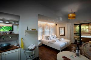This double room features a hot tub and a spa bath. The double room's kitchenette, which has a tea and coffee maker, is available for cooking and storing food. This air-conditioned double room is comprised of a flat-screen TV with streaming services, a private bathroom as well as a balcony with garden views. The unit is equipped with 1 bed.
