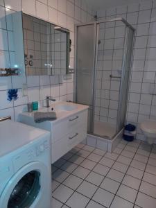 Zinnowitz, Dünenstraße 36 WE 2 comprende una TV a schermo piatto. L'angolo cottura presenta frigorifero, lavastoviglie e microonde, più macchina da caffè e bollitore elettrico.