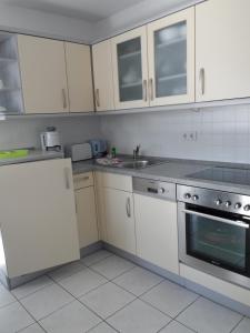 A flat-screen TV is fitted in the accommodation at Zinnowitz, Seestr 3b WE 22. The kitchenette at Zinnowitz, Seestr 3b WE 22 includes a kettle, coffee machine, microwave, oven, and dishwasher.
