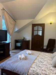 Die Wohneinheiten sind mit einem Balkon ausgestattet und verfügen über einen Flachbild-TV sowie ein eigenes Badezimmer mit einer Badewanne und kostenlosen Pflegeprodukten. Im Zloty dworek sind ein Kühlschrank, eine Kaffeemaschine und ein Wasserkocher vorhanden.
