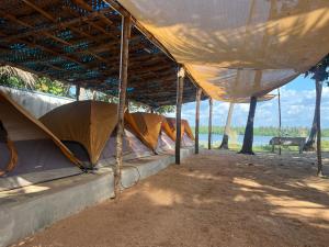 This tent features a seating area, an outdoor dining area, river views and a shared bathroom. The unit offers 3 futons.