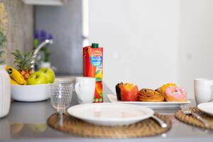 The fully equipped kitchen features a stovetop, a refrigerator, kitchenware and a microwave. The studio provides air conditioning, a washing machine, a terrace with garden views as well as a private bathroom featuring a shower. The unit offers 1 bed and 1 futon.