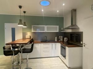 Cet appartement se compose de 2 chambres, d'un salon, d'une cuisine entièrement équipée avec un réfrigérateur et une machine à café, ainsi que de 1 salle de bains avec une douche et un sèche-cheveux. Le linge de lit et les serviettes sont fournis par l'établissement.